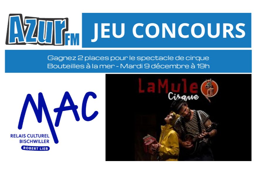 Du 24 au 30 novembre, gagnez 2 places pour découvrir le spectacle de cirque intitulé ‘’bouteilles à la mer’’, joué le mardi 9 décembre à 19h à la MAC de Bischwiller. C’est à découvrir en famille…
