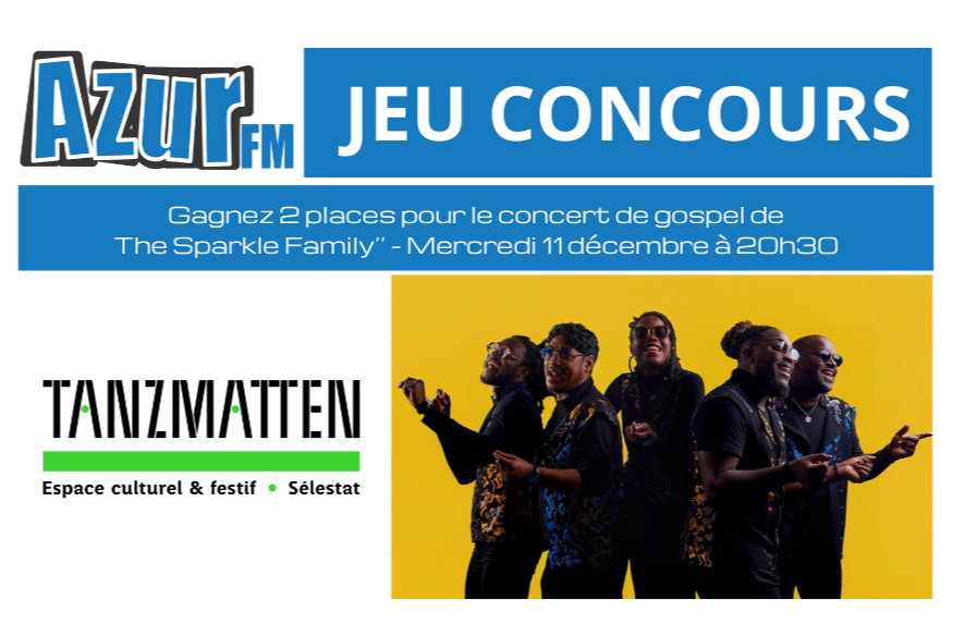 Du 24 au 30 novembre, gagnez 2 places pour le concert de gospel de ‘’the Sparkle Family’’, le mercredi 11 décembre à 20h30 aux tanzmatten à Sélestat. Un cocktail vocal magnétique émotionnel, une ambiance chaleureuse à l’approche de Noël…