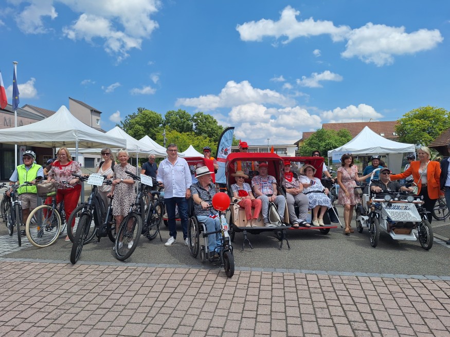 Fruit d’une collaboration entre Alsace à Vélo, Alsace Destination Tourisme, la Collectivité Européenne d’Alsace, l’Office de Tourisme Alsace Rhin Brisach et la Communauté de Communes Alsace Rhin Brisach, la boucle « Alsace à vélo et tricycles pour tous » a été inauguré vendredi 7 juin. Le principe est simple, un parcours accessible au vélo mais aussi à toutes les personnes à mobilité réduite (PMR), qui lui a valu le label « Tourisme & Handicap » et l’honneur d’être le premier en France.