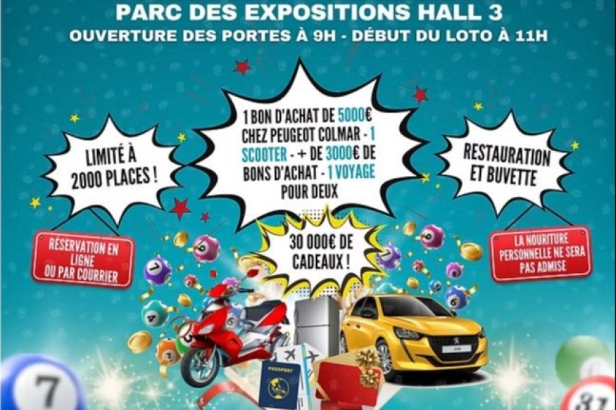 Du 17 au 23 novembre, gagnez 2 places (entrées au loto + 6 cartons de jeu) pour le méga loto organisé le dimanche 7 décembre, au parc expo de Colmar, dans le hall 3 et tentez de gagner le gros lot : 1 bon d’achat d’une valeur minimum de 5 000 € chez Peugeot Colmar.