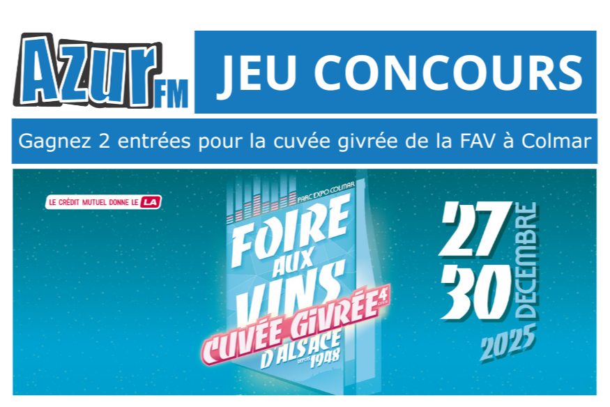 Du 1er au 7 décembre, gagnez 2 entrées (simples) pour la cuvée givrée de la Foire aux Vins de Colmar, du 27 au 30 décembre, au parc expo de Colmar. Vous allez pouvoir profiter des animations, rencontrer des exposants, le tout dans une ambiance festive et bienveillante !