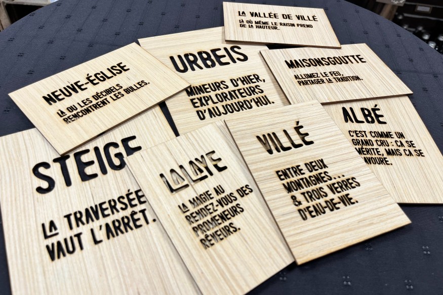 Une idée cadeau originale. Depuis l’été dernier, l’Office de la Vallée de Villé propose à la vente une vingtaine de cartes postales en bois. Des créations 100% locales qui valorisent chacun des 18 villages, mais également l’ensemble du territoire, à l’aide d’une phrase humoristique ou poétique.