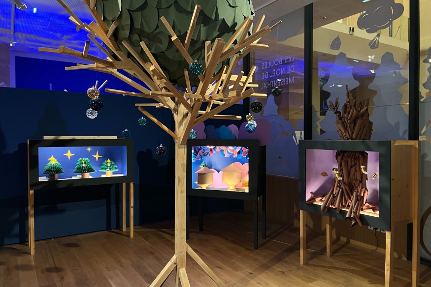 EXPOSITION A LA BIBLIOTHEQUE HUMANISTE : « EN FORET AVEC LES BOULES DE NOËL DE MEISENTHAL"