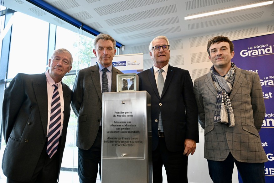 Un nouveau travail de mémoire. La première pierre du Mur des Noms a été dévoilée ce mardi 01 octobre à Schirmeck, en contre-bas du Mémorial Alsace-Moselle. Un projet porté par la Région Grand Est pour commémorer les Alsaciens et les Mosellans morts et disparus au cours de la Seconde Guerre Mondiale.