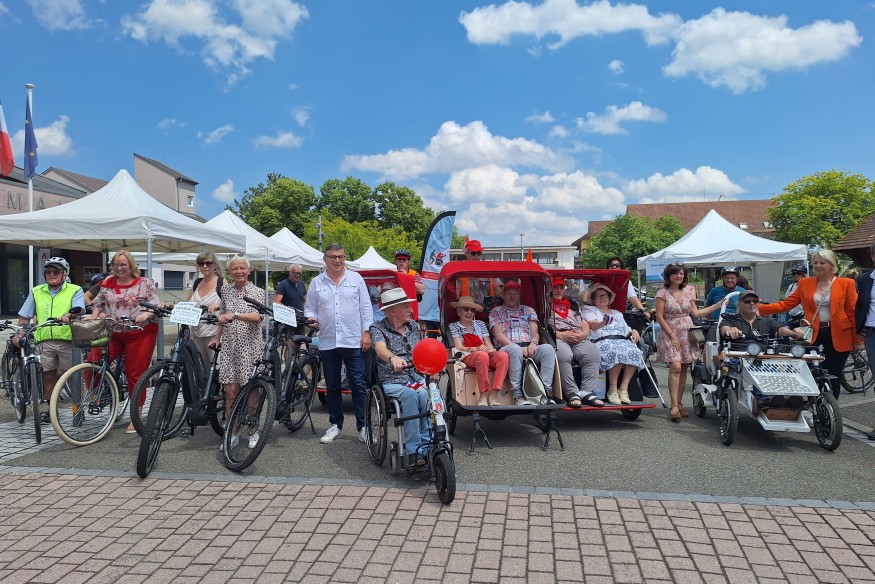 Fruit d’une collaboration entre Alsace à Vélo, Alsace Destination Tourisme, la Collectivité Européenne d’Alsace, l’Office de Tourisme Alsace Rhin Brisach et la Communauté de Communes Alsace Rhin Brisach, la boucle « Alsace à vélo et tricycles pour tous » a été inauguré vendredi 7 juin. Le principe est simple, un parcours accessible au vélo mais aussi à toutes les personnes à mobilité réduite (PMR), qui lui a valu le label « Tourisme & Handicap » et l’honneur d’être le premier en France.